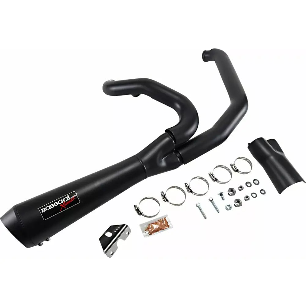 - Getrapte headers gaan over in een echte omgekeerde conus 4" megafoon uitlaatdemper.