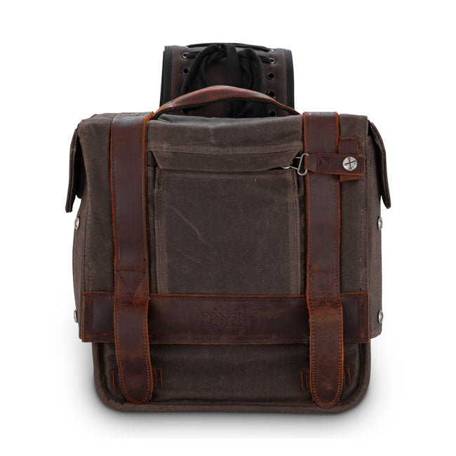 De Burly universele set motorzadeltassen is verkrijgbaar in zwart Cordura of dark oak natgewaxed canvas, beide gemaakt om lang mee te gaan en met karakter te verouderen. Leren panelen geven de tassen een vintage look, terwijl het versterkte metalen en polyethyleen binnenframe ervoor zorgt dat de tassen hun vorm behouden, of ze nu vol of leeg zijn. De breedte is verstelbaar zodat de tassen op verschillende spatbordmaten passen, terwijl de rolsluiting met Snap/Velcro Road Shield-systeem wind en weer buiten houdt.