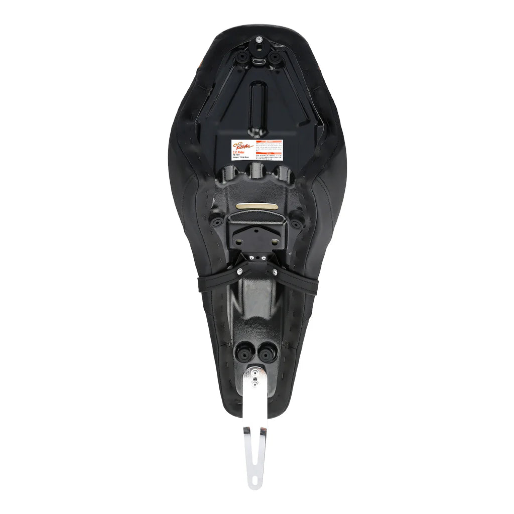 Deze Step-Up-zitting geeft de motor een lagere, sportievere uitstraling. De voorgevormde bekleding verlaagt de zithoogte enigszins en brengt de berijder iets naar voren, zodat hij de bedieningselementen beter kan bereiken. Het bredere zitvlak verdeelt de druk gelijkmatig en biedt veel comfort zonder te zacht aan te voelen.