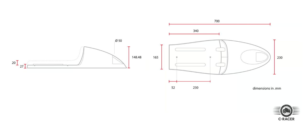 Dit café-zadel heeft het klassieke bultontwerp in een iets langere versie. Het past goed bij grotere modellen en geeft de motor een meer uitgebalanceerde uitstraling. Perfect als u de tijdloze café racer-stijl wilt behouden, maar dan in een versie die beter past bij een langere motorfiets.