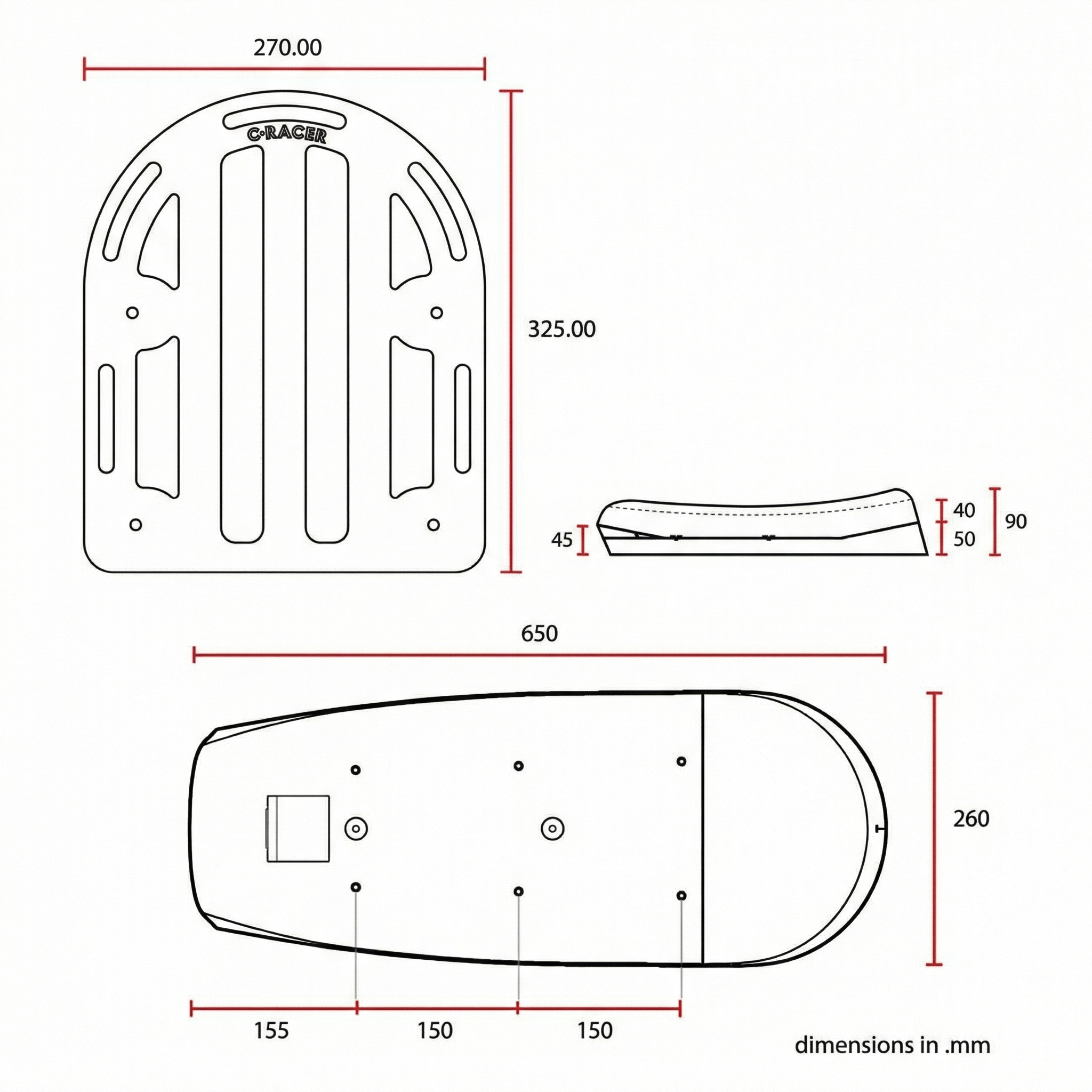 Vlak en breed, perfect voor een scrambler-constructie. De extra vulling aan de achterkant maakt het comfortabeler tijdens langere ritten en geeft de motor een strakke, rechte lijn. U kunt kiezen voor een verwijderbare aluminium bagagedrager of zonder, afhankelijk van of u de voorkeur geeft aan een strakke look of de mogelijkheid om wat spullen mee te nemen.