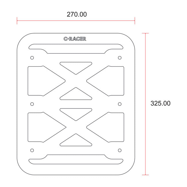 De C-Racer bagagerek nr. 2 is een rek van geborsteld aluminium met zes bevestigingspunten, ontworpen voor aangepaste toepassingen. Het wordt geleverd met zwart gepoedercoate stalen beugels. Met een maximaal draagvermogen van 5 kg is het ideaal voor het vervoeren van kleine tassen of uitrusting.
