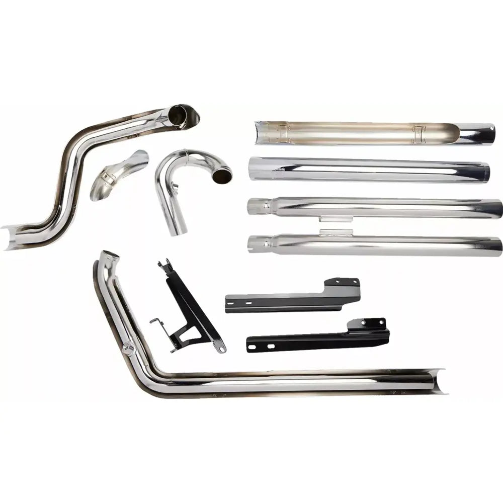 De Cobra Bad Hombre Duals Uitlaat brengt een klassieke uitgerekte lowrider stijl naar je Harley-Davidson en verbetert tegelijkertijd de prestaties. Met 1-3/4" uitlaatbuizen en 2-1/2" hitteschilden zorgt dit systeem voor een soepele uitlaatstroom en een verbeterd koppel. Het ontwerp met dubbele uitlaat, de uitlijning met het achterspatbord en de verwijderbare schotten zorgen voor functionaliteit en een iconisch uiterlijk.