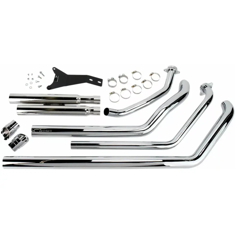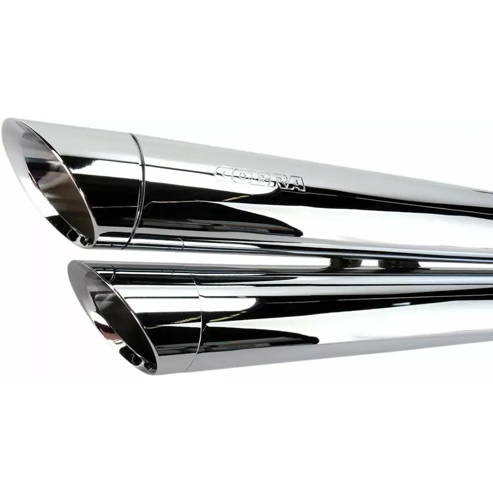 De Cobra Streetrod Slash Cut Uitlaat Systemen levert de klassieke shotgun styling gecombineerd met verhoogde prestaties voor uw Suzuki. Met full-length 222° hitte schilden zien deze pijpen er geweldig uit en leveren zowel een geweldig geluid als een grote vermogenstoename.