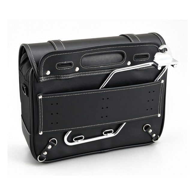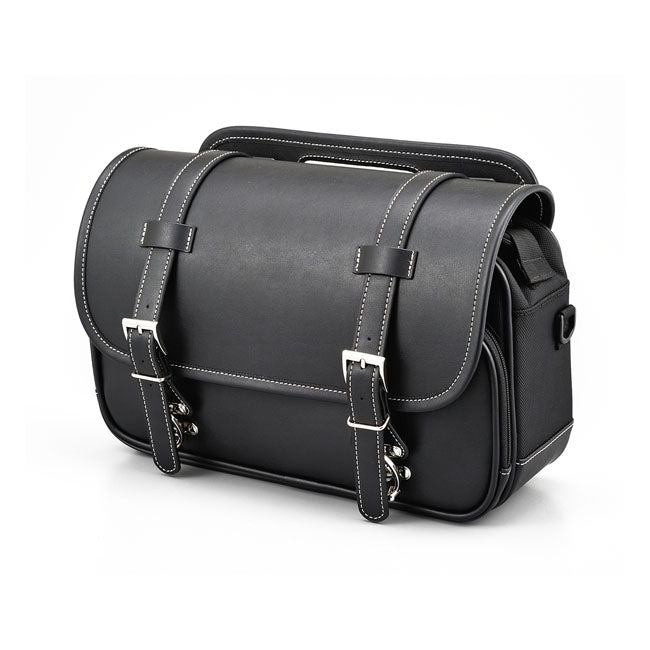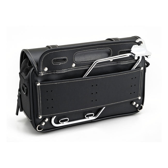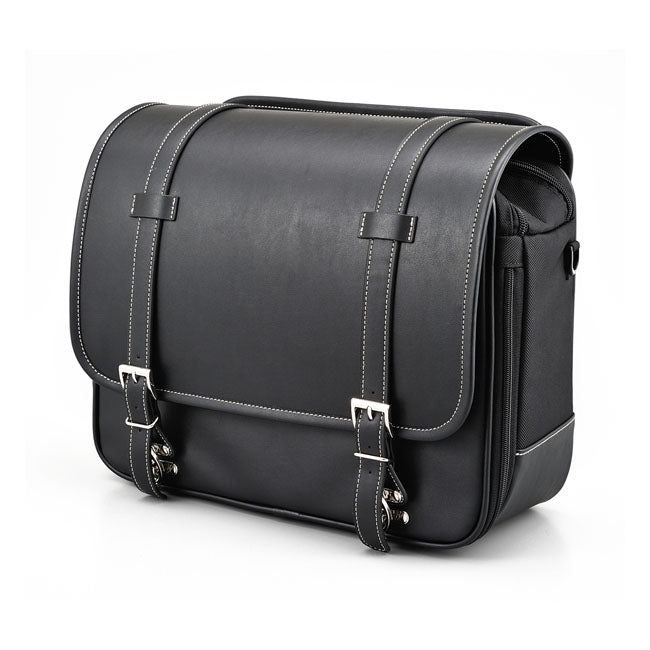 De Daytona universele motorzadeltas is een veelzijdige zadeltas die zowel aan de linker- als aan de rechterkant van de motorfiets kan worden bevestigd. De tas is voorzien van meerdere bevestigingsopties aan de achterkant en wordt geleverd met leren en nylon riemen voor bevestiging. Dankzij de versterkte constructie behoudt de tas zijn vorm, zelfs wanneer hij leeg is, terwijl de snelsluitingen met verstelbare riemen met gespen zorgen voor een veilige sluiting.