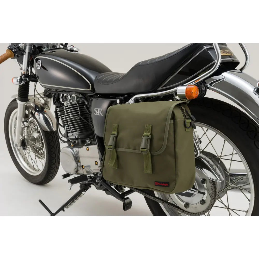 Deze motorzadeltas is gemaakt van stevig canvas met een interne kunststof achterplaat, waardoor hij zijn vorm en stevigheid behoudt voor dagelijks gebruik. Wordt geleverd met universele bevestigingsriemen, waardoor hij eenvoudig op een groot aantal motorfietsen kan worden gemonteerd.