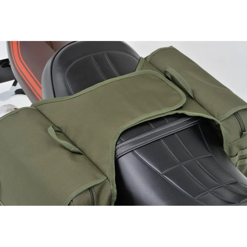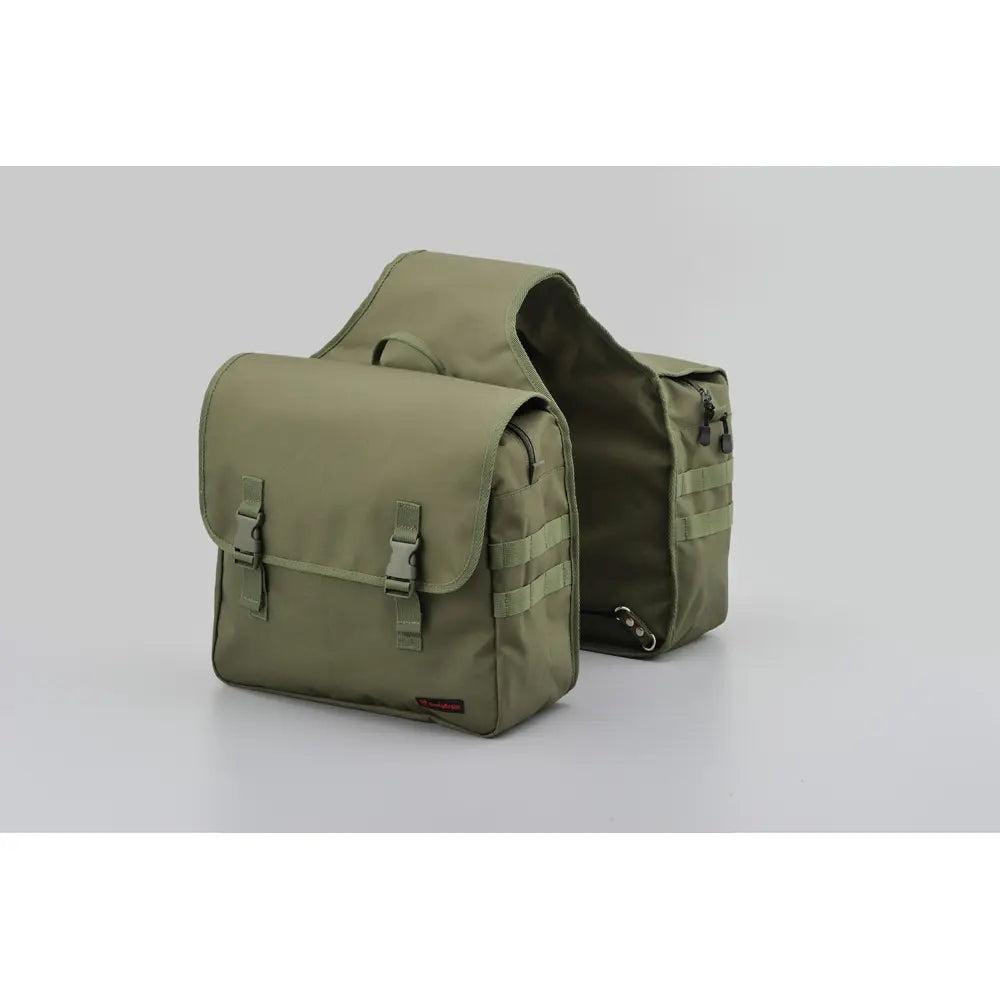 Deze motorzadeltassen zijn gemaakt van stevig canvas met een interne plastic achterplaat, waardoor ze hun structuur en sterkte behouden voor dagelijks gebruik. De breedte is verstelbaar, zodat ze op verschillende spatbordmaten passen.