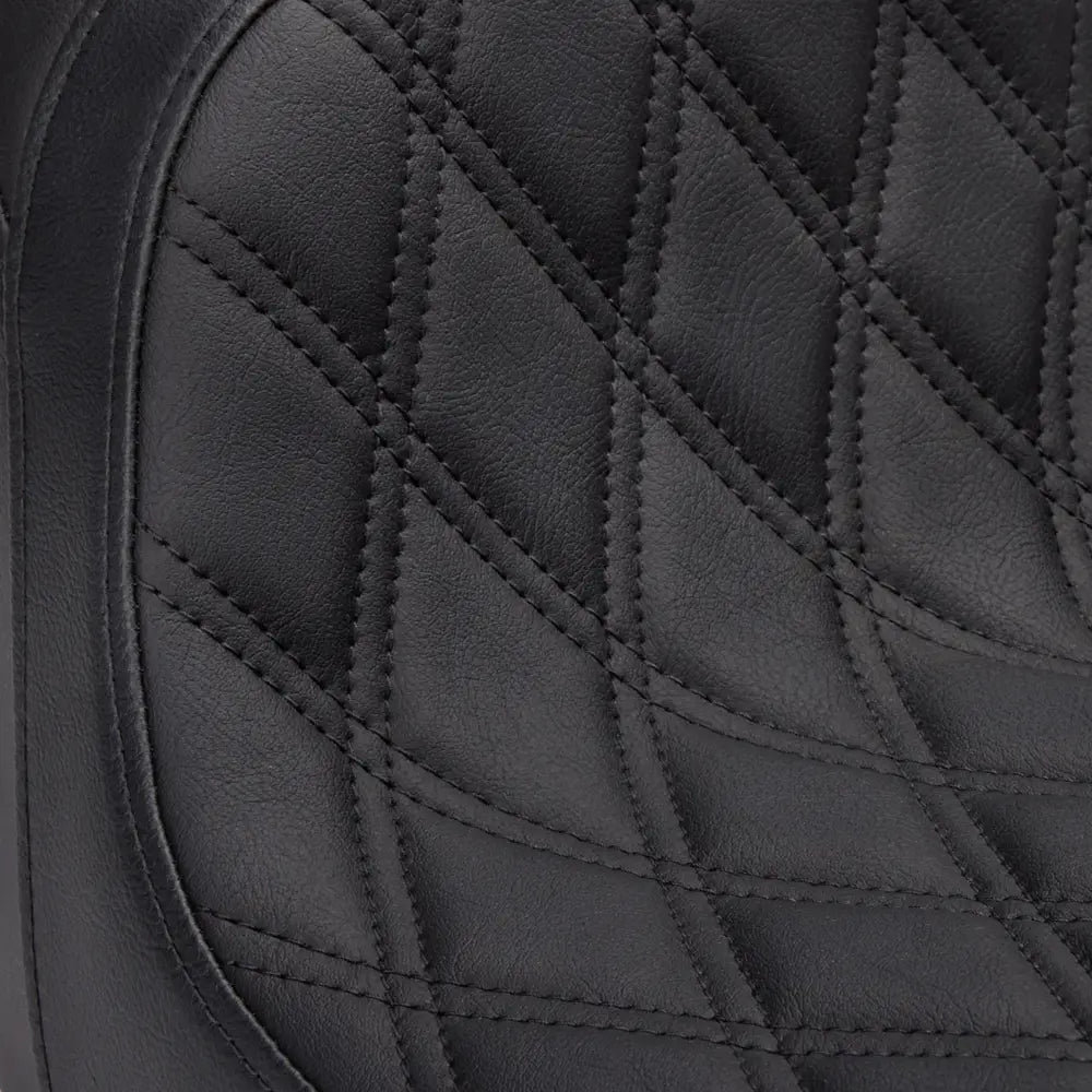 De Drag Specialties Performance Predator 2-Up zadel geeft uw Harley een gepersonaliseerde look en biedt zowel u als uw passagier het comfort dat u nodig hebt op de weg. Hij is ontworpen met een hoge rugsteun voor de bestuurder, een voorgevormd zitgedeelte en een slank profiel dat prettig aanvoelt tijdens lange ritten en perfect past bij uw motor.