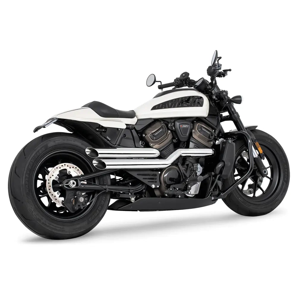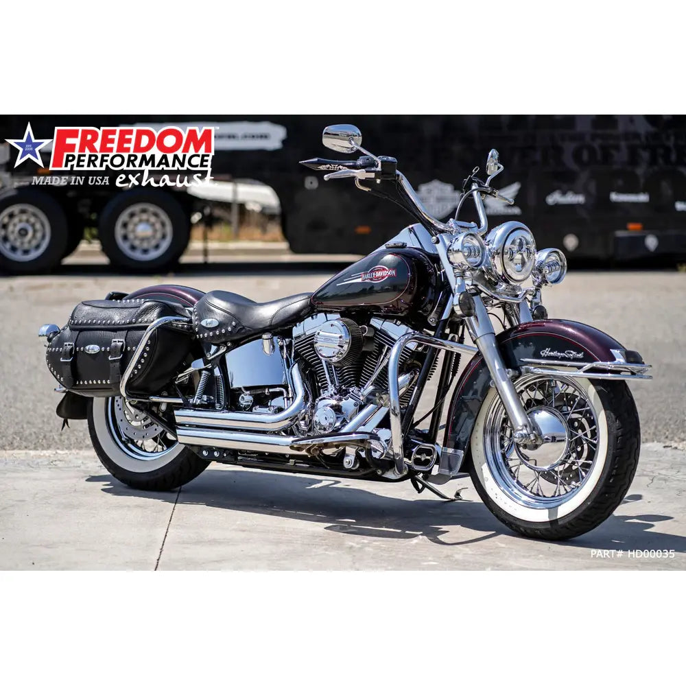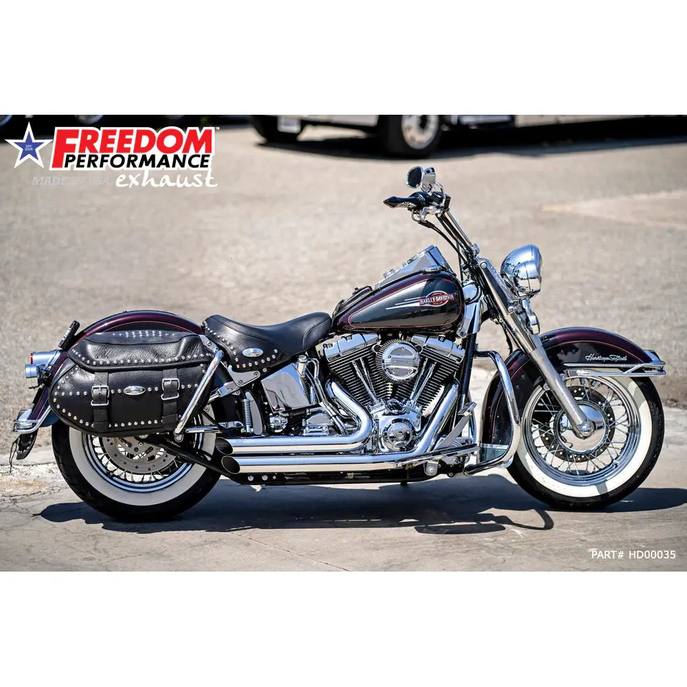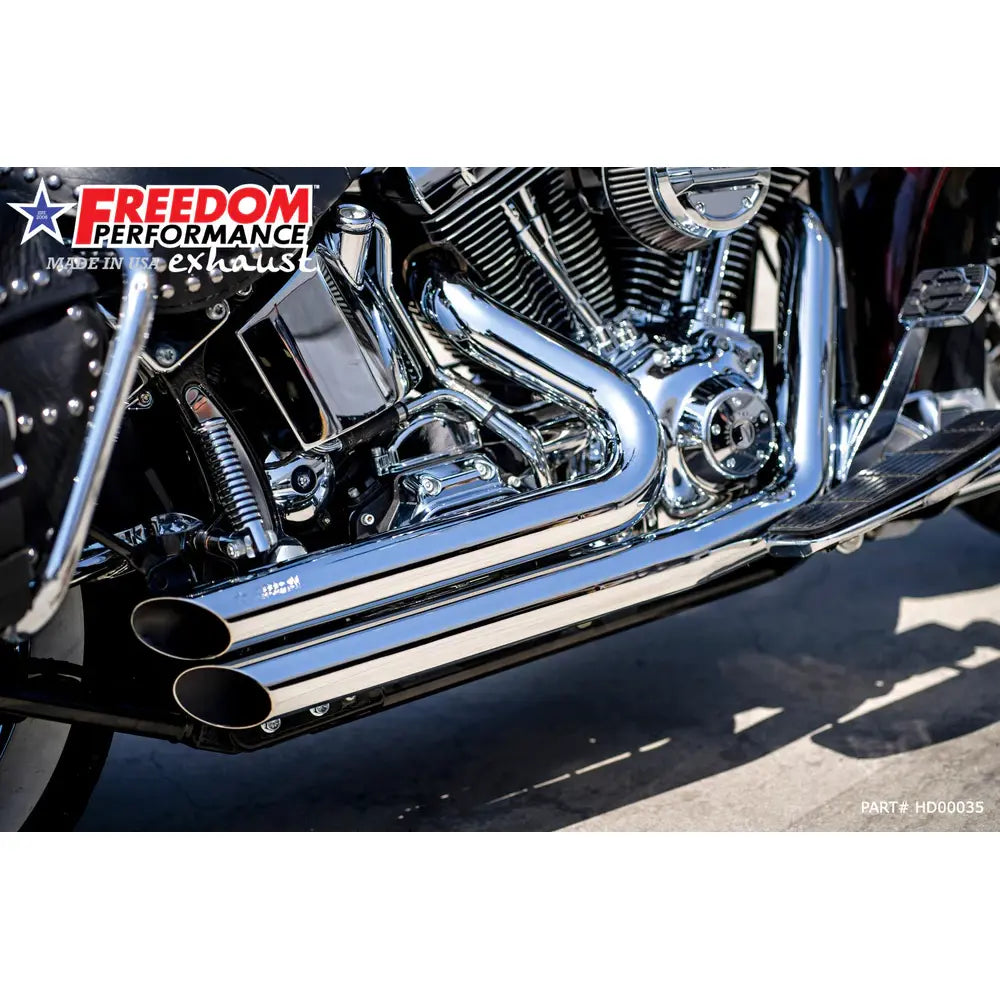 Ontketen dat diepe hot rod geluid met de Freedom Performance Amendment Side Slash uitlaat voor Harley. Dit systeem verhoogt het koppel en het vermogen met behoud van de klassieke 2-into-2 styling.