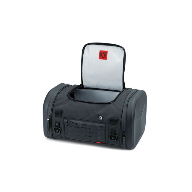 De XKursion XS Steward-roltas is gebaseerd op het klassieke ontwerp van een motorroltas, maar is vernieuwd met hoogwaardige materialen en moderne functionaliteit. De tas is gemaakt van UV-bestendig, weerbestendig 1680 denier textiel en biedt 44 liter opbergruimte met dubbele toegang aan de zijkant voor eenvoudig in- en uitladen. Reflecterende accenten verbeteren de zichtbaarheid, terwijl MOLLE-panelen en geïntegreerde D-ringen tal van bevestigingsmogelijkheden bieden. De Steward is even veelzijdig als duurzaam en kan eenvoudig worden bevestigd aan een kofferbak, bagagerek, sissybar of passagiersstoel.