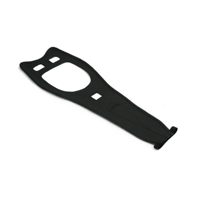 Deze tankbeschermer volgt de tank nauwkeurig, zodat hij strak zit zonder openingen langs de randen. De vilten achterkant voegt een laag toe tussen de beschermer en uw lak, en de gevlochten randen geven het een afgewerkte look zonder overdreven te zijn.
