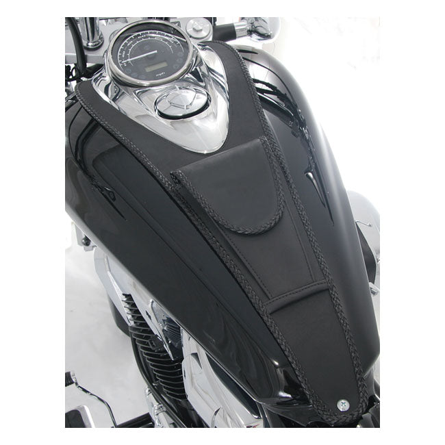 Deze tankbib voegt een beetje functionaliteit toe zonder de lijnen van de motorfiets te verstoren. Hij sluit nauw aan op de tank en maakt gebruik van de standaardbevestigingen, dus de installatie is eenvoudig. Het ingebouwde zakje biedt ruimte voor kleine benodigdheden en de vilten achterkant helpt de lak eronder te beschermen.