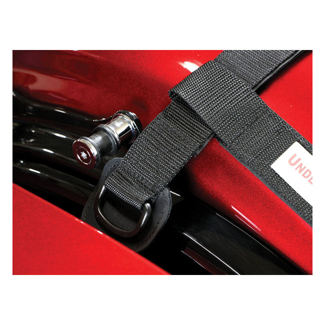 De Route 1 bagagebevestiging onder het zadel is de perfecte oplossing voor motoren zonder rugleuning of bagagerek. Deze wordt onder het passagierszadel geïnstalleerd en biedt vier stevige bevestigingspunten voor bagageriemen. Dankzij de stevige materialen en beschermende achterkant blijft uw bagage stabiel en wordt de afwerking van uw motor beschermd.