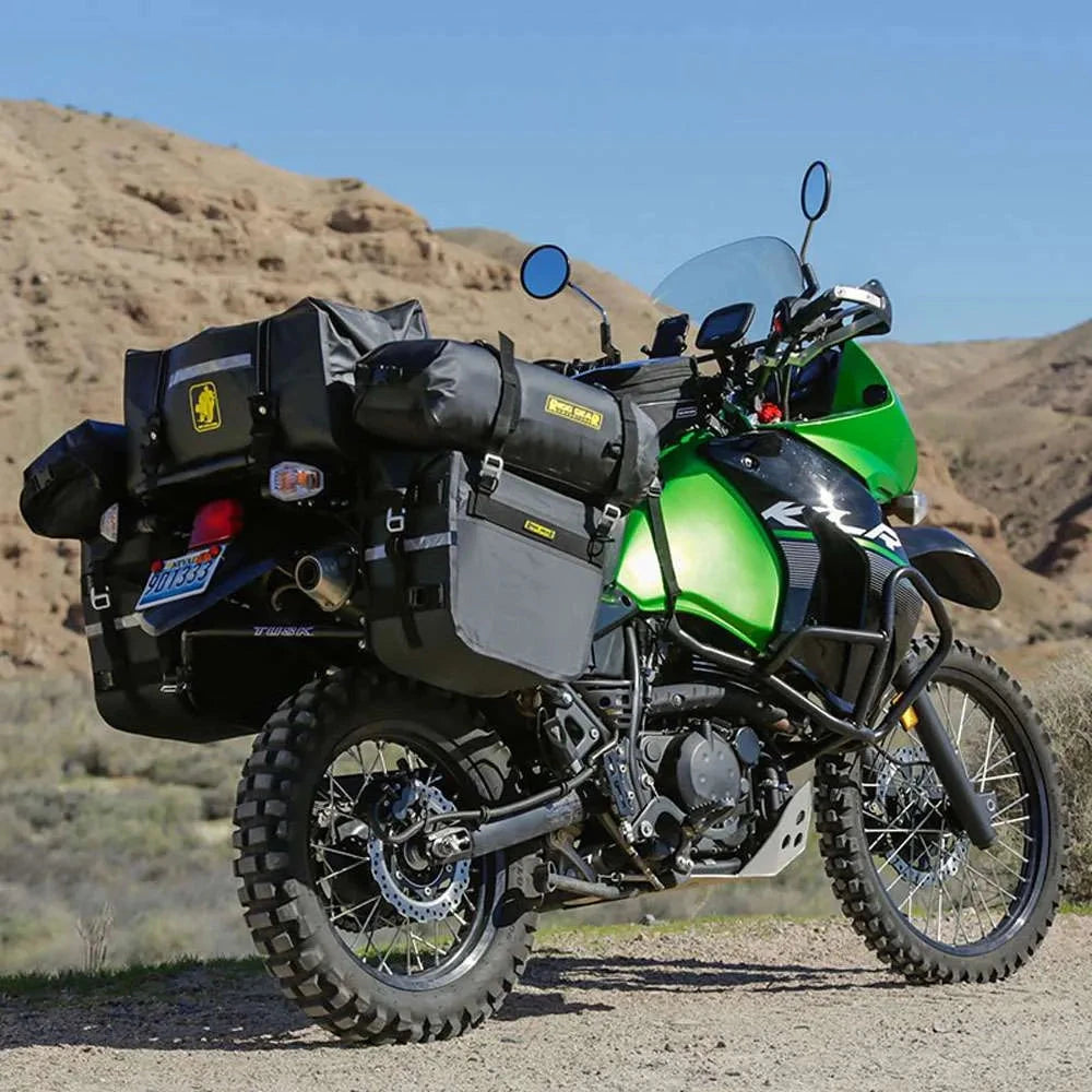 De Sierra Dry zadeltassen zijn gemaakt voor avontuur en bieden 100% waterdichte bescherming en robuuste duurzaamheid. Ze zijn gemaakt van zwaar 24 oz PVC-zeildoek met warmgelaste naden en houden uw spullen onder alle weersomstandigheden volledig droog. De aluminium hardware van vliegtuigkwaliteit zorgt voor stevigheid zonder kwetsbare plastic onderdelen, terwijl de uitneembare voeringen het in- en uitpakken eenvoudig maken.