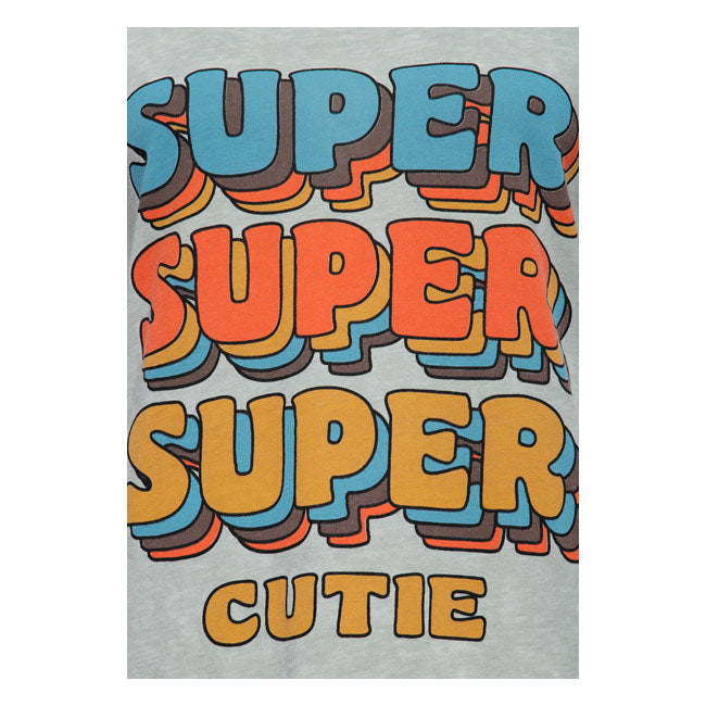 Dit mouwloze T-shirt van Queen Kerosin voegt speelse stijl toe met de "Super Super Cutie"-print en gewassen afwerking. Lichtgewicht, retro en gemakkelijk te dragen.