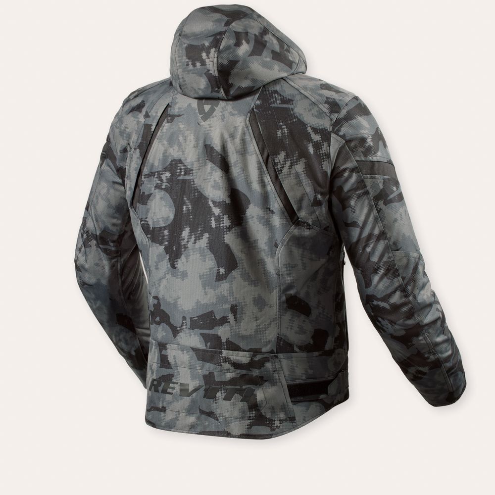 Het REV'IT! Flare 3 H2O motorjack combineert een moderne streetwear-stijl met praktische bescherming en weerbestendigheid. Met een opvallend camouflageontwerp, waterdichtheid en een afneembare capuchon is het klaar voor stedelijke ritten in onvoorspelbare omstandigheden. Verborgen ventilatieritsen en gerecyclede materialen maken dit jack even functioneel als vooruitstrevend – perfect voor motorrijders die stijl en inhoud eisen.