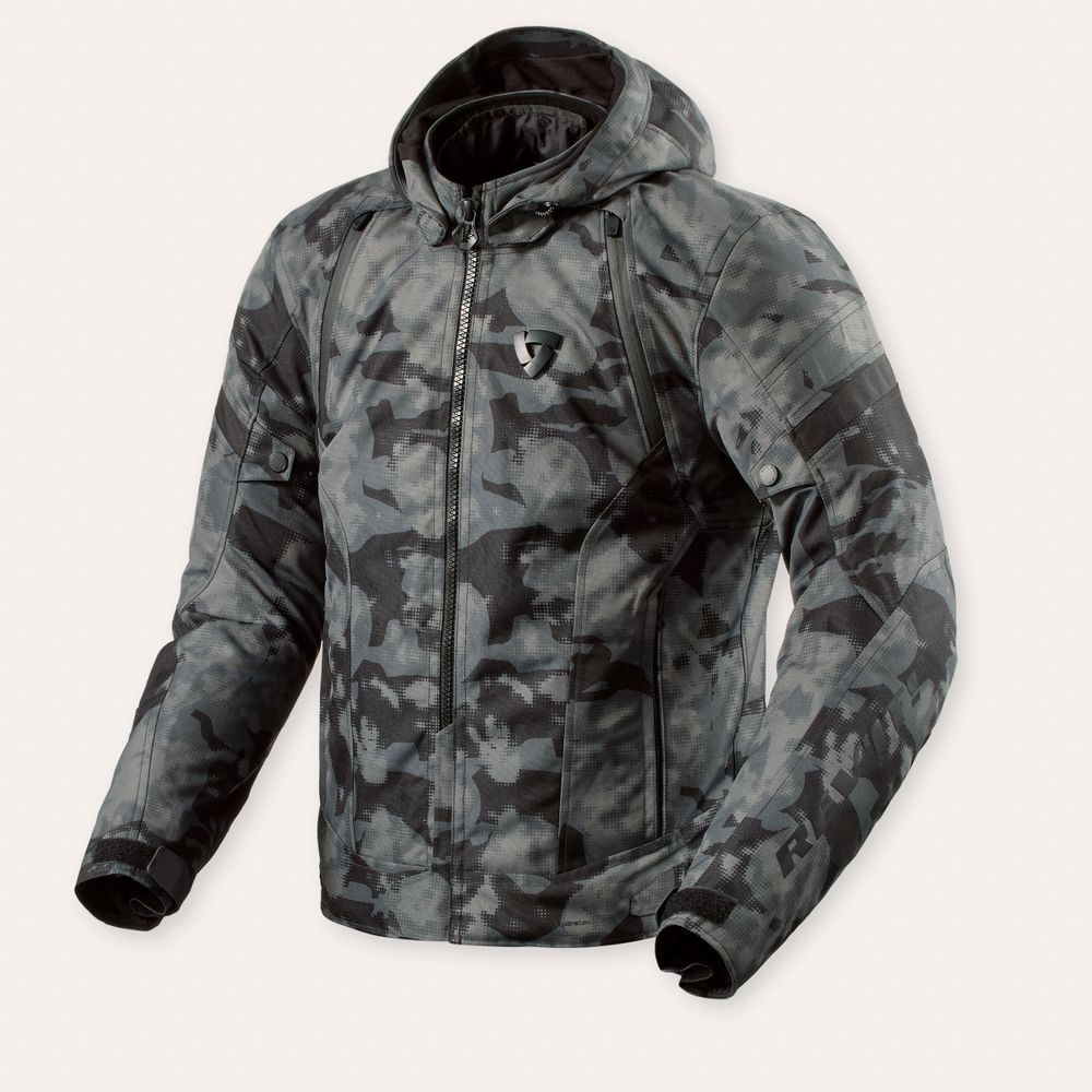 The REV’IT! Flare 3 H2O motorcycle jacket blends modern streetwear style with real-world protection and weather resistance. With a bold camo design, waterproofing, and a detachable hood, it’s ready for urban rides in unpredictable conditions. Hidden ventilation zippers and recycled materials make this jacket as functional as it is forward-thinking—perfect for riders who demand style and substance.