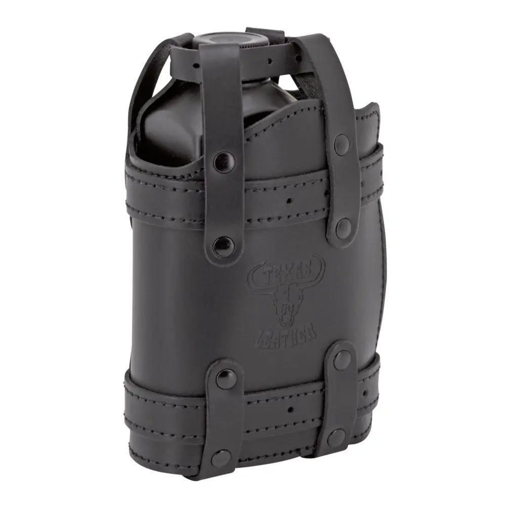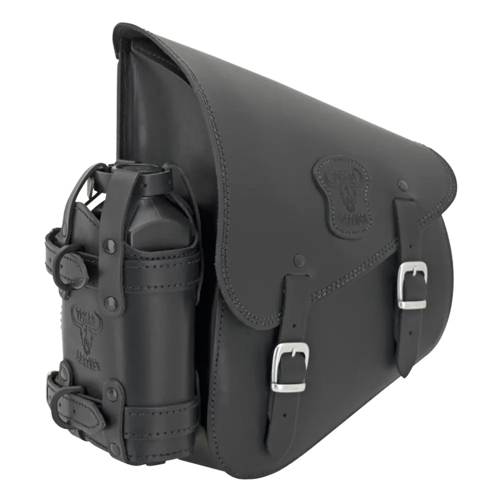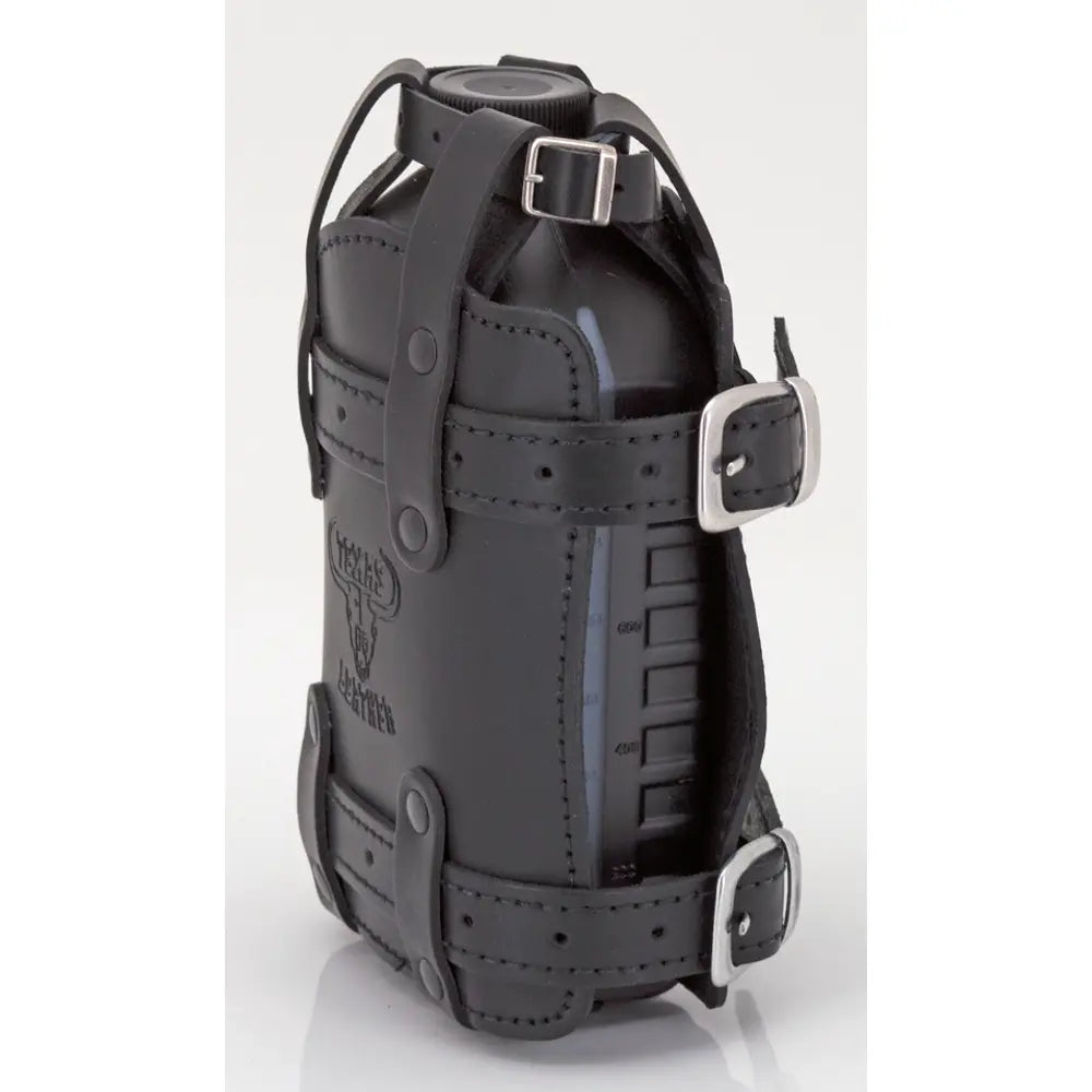 De Texas Leather oliefleshouder past op de meeste rechthoekige 1L olieflessen voor eenvoudige bevestiging op je motor. Gemaakt van echt leer.