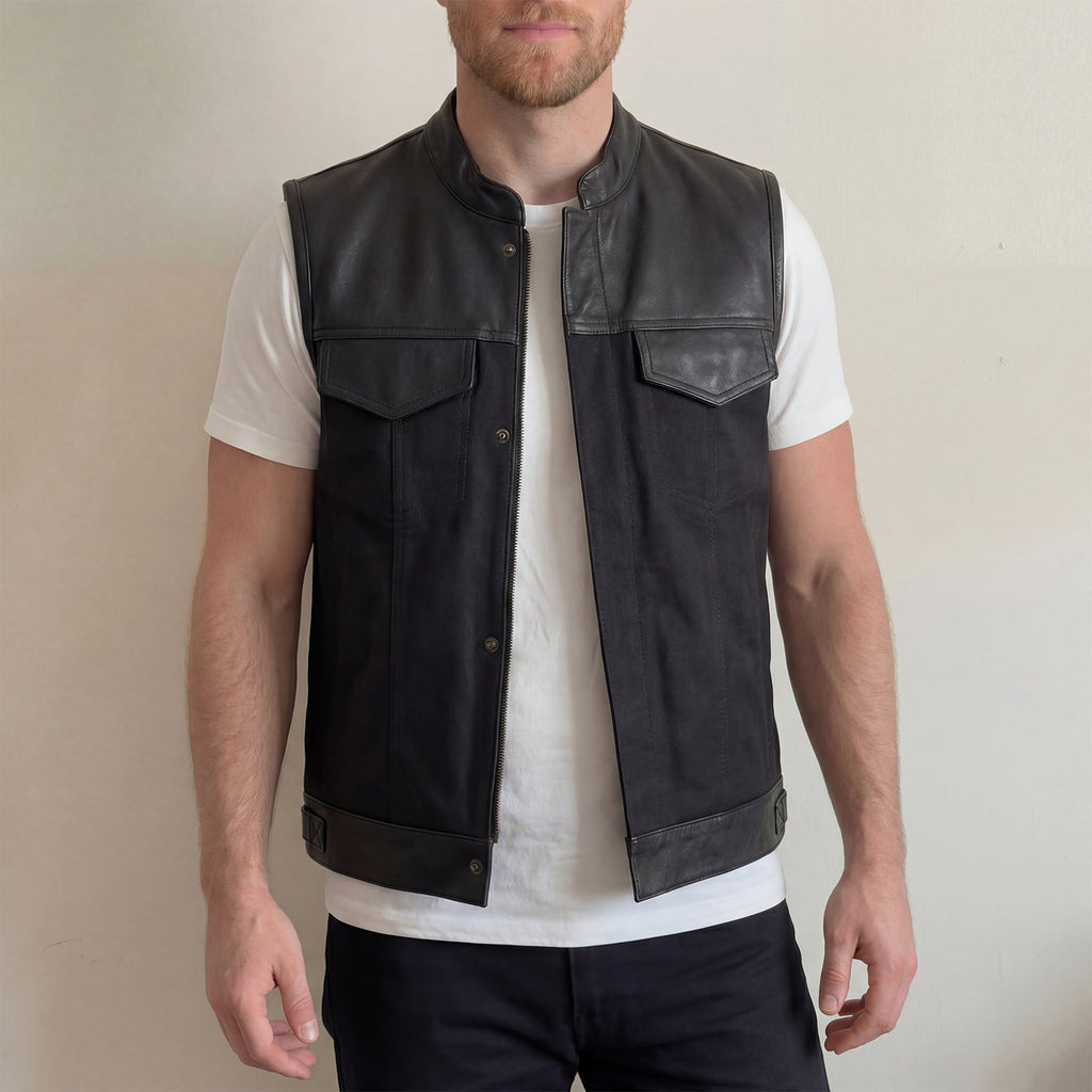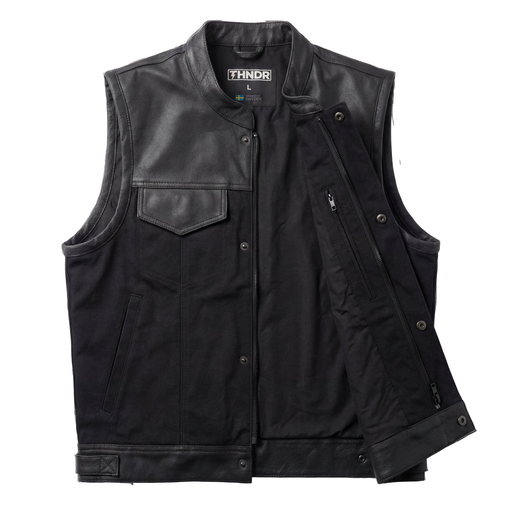 Het Breakout motorvest combineert een old school biker-look met moderne materialen die echt van pas komen op de weg. Het bovenstuk is gemaakt van met de hand afgewerkt buffelleer en de rest van het vest is van canvas, een lichtere, moderne variant op het klassieke volledig leren vest. De mesh voering zorgt voor luchtcirculatie tijdens langere ritten en er is voldoende opbergruimte voor je telefoon, portemonnee en andere dagelijkse benodigdheden.