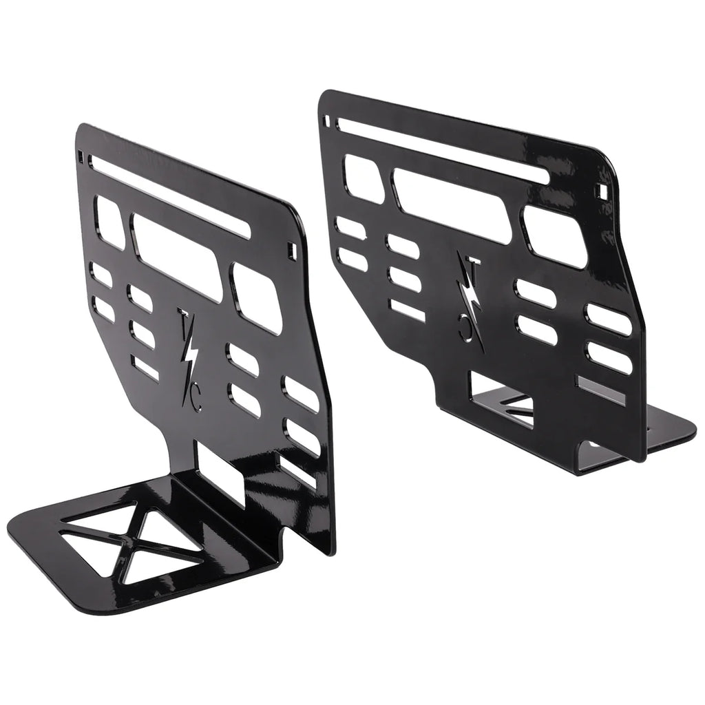 Met deze harde bevestigingsbeugels kunt u Thrashin-zadeltassen gebruiken zonder de throw-over-opstelling. Ze zijn gemaakt van zwaar 11-gauge staal, worden rechtstreeks op de motorfiets vastgeschroefd en zorgen voor een nette, stevige bevestiging. Dankzij het verstelbare ontwerp kunt u de hoogte nauwkeurig afstellen en ze zijn geschikt voor zowel vaste als afneembare sissy bars.