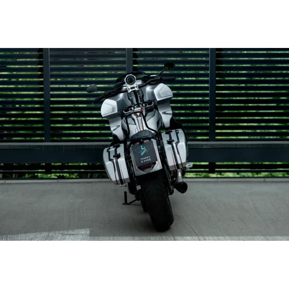 De Tommy & Sons Inception zadeltassen geven je Harley Dyna of Harley Dyna een clubstyle uitstraling en zijn praktisch in het gebruik. Softail. Ze zijn gemaakt van stevig glasvezel en klaar om gelakt te worden. Ze bieden een strakke pasvorm, stevige opbergruimte en een gedurfde clubstyle look.
