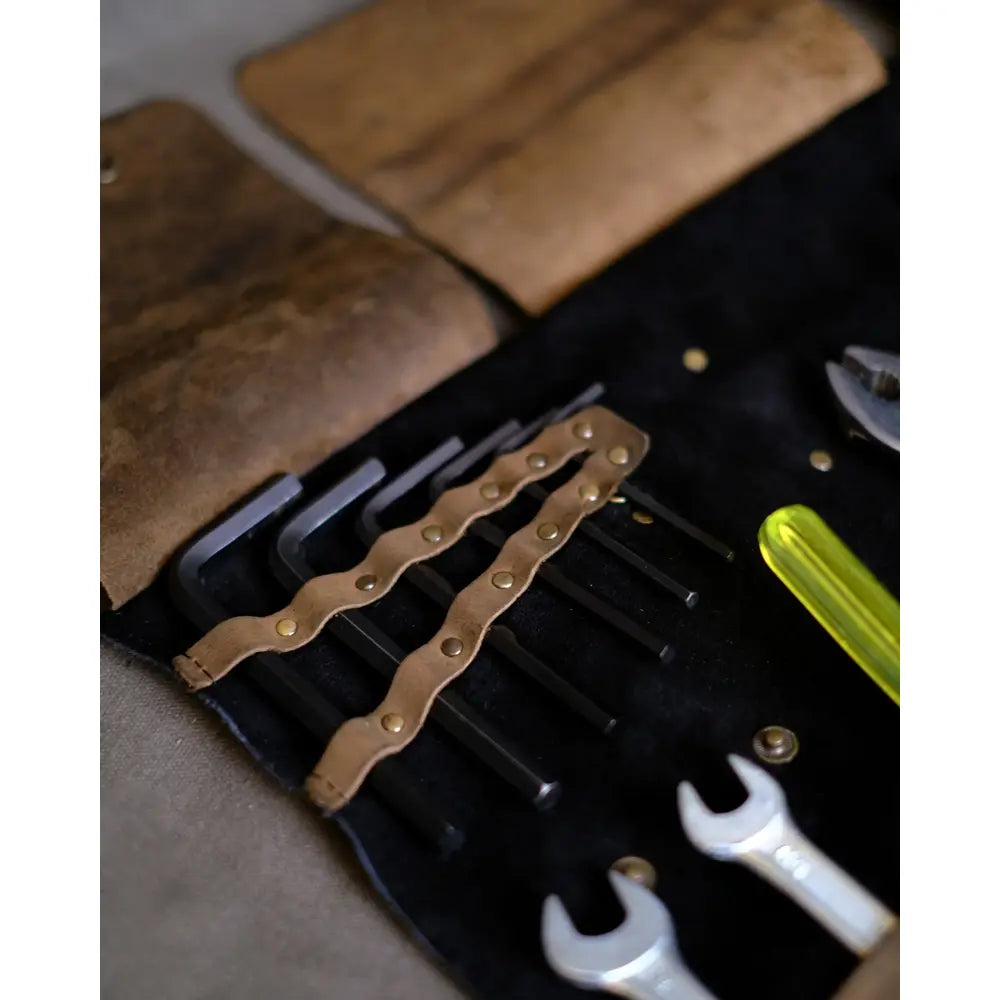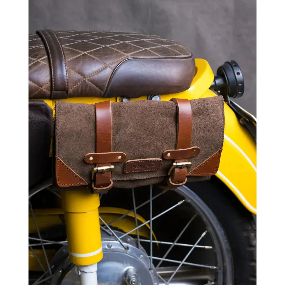 De Trip Machine lederen gereedschapstas is gemaakt voor motorrijders die graag goed voorbereid op pad gaan. Hij is handgemaakt van 100% leer met stevig, waterafstotend suède, is robuust, authentiek en gemaakt om lang mee te gaan. Met tal van speciale vakken voor je essentiële gereedschap en een veilig vak met ritssluiting voor extra's, kan hij rechtstreeks op je motorfiets worden bevestigd, zodat je altijd alles wat je nodig hebt binnen handbereik hebt.