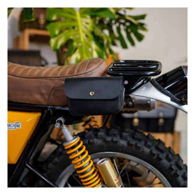 De Sidekick-motortas is een compacte leren tas die zowel op als naast je motorfiets goed van pas komt. Oorspronkelijk ontworpen als stuurtas, bleek hij al snel overal op de motorfiets thuis te zijn en net zo praktisch om bij je te dragen. Hij is handgemaakt van dik, stevig leer en gaat jarenlang mee, terwijl hij na verloop van tijd een unieke patina krijgt.