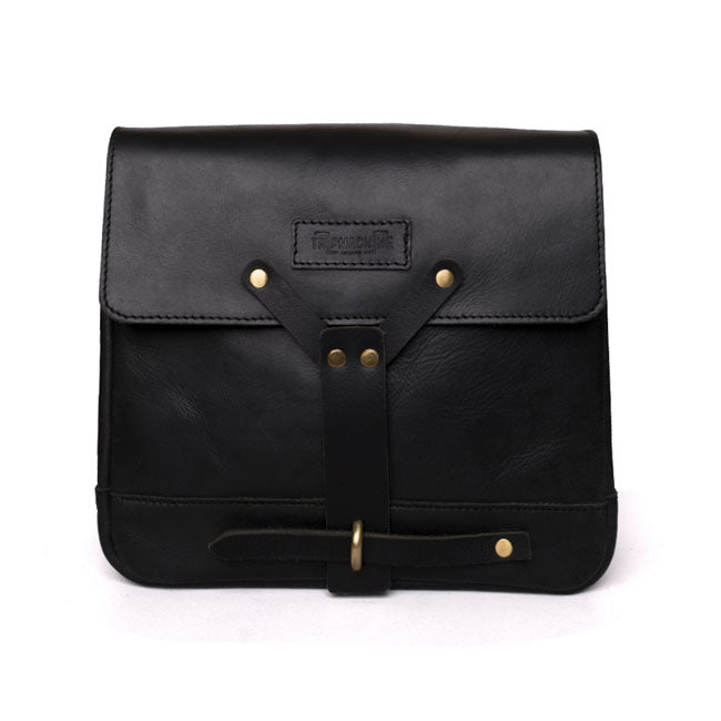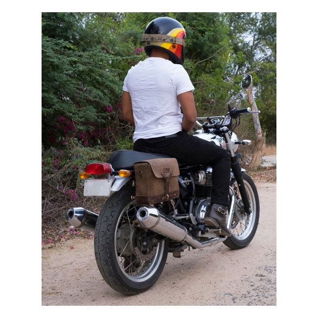De Trip Machine motorfiets-messengertas is geïnspireerd op de klassieke Zwitserse munitietas uit de Tweede Wereldoorlog. Deze tas is handgemaakt van vrijwel onverwoestbaar 2,5 mm dik, heavy-duty leer van harnas-kwaliteit en gaat een leven lang mee, terwijl hij door gebruik een rijke patina krijgt. De kenmerkende verweerde afwerking geeft hem een tijdloos karakter en dankzij het universele bevestigingssysteem kunt u hem snel op uw motorfiets bevestigen en weer verwijderen. Als u niet op de motor zit, kunt u de tas comfortabel over uw schouder dragen. De tas heeft een ruime, met suède gevoerde binnenzak om uw spullen overzichtelijk op te bergen.
