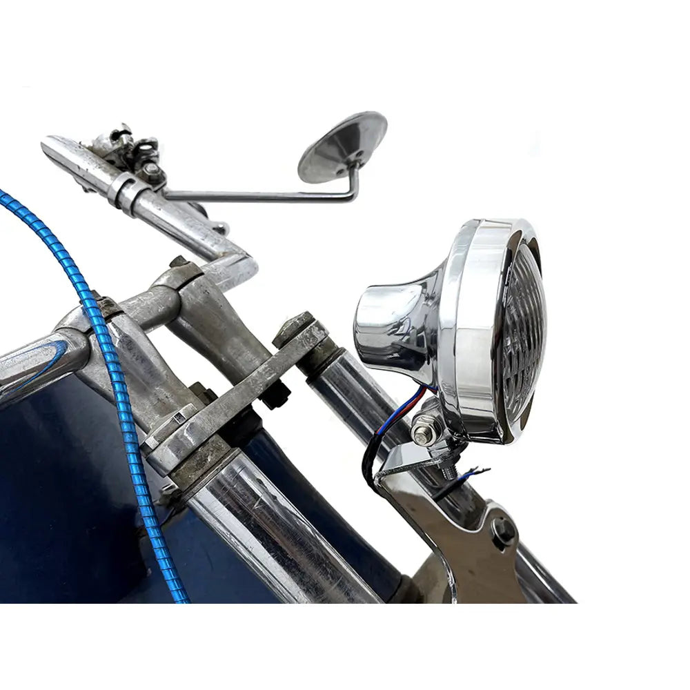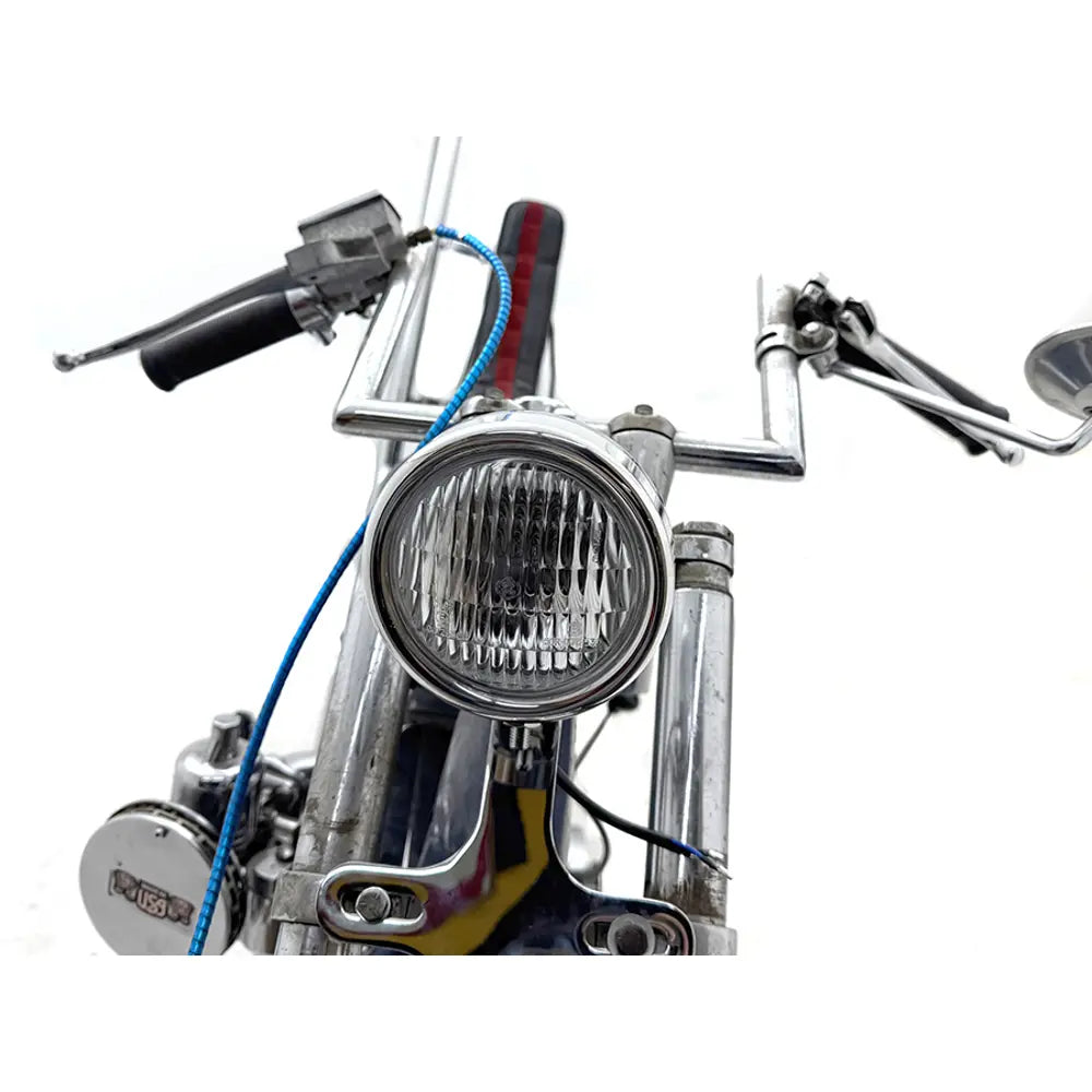Deze retro-stijl koplamp van V-Twin MFG levert klassieke chopper vibes, gebouwd om helder te schijnen en er scherp uit te zien op elke custom setup.
