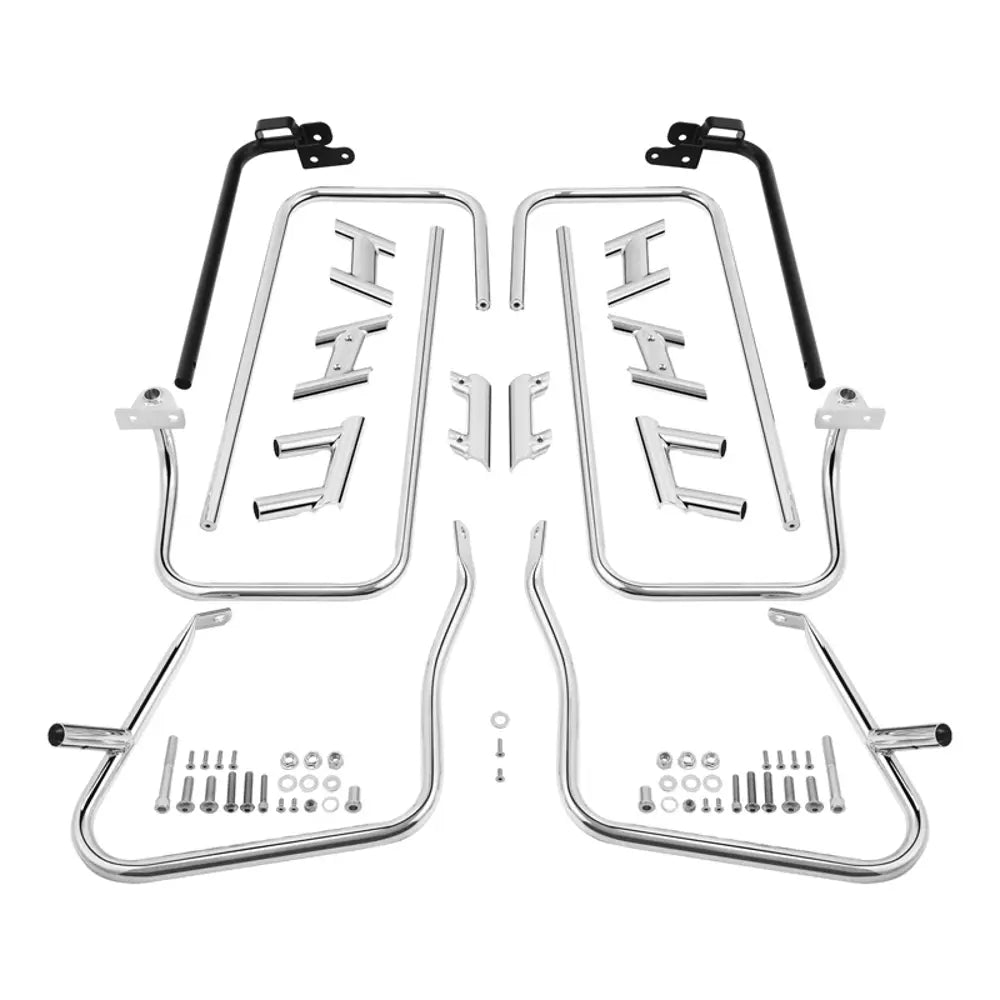 Deze zadeltasbeschermingsset biedt extra bescherming voor uw harde tassen. Compleet met alle bevestigingsmaterialen is dit een solide upgrade voor motorrijders die hun zadeltassen willen beschermen tegen krassen en stoten.